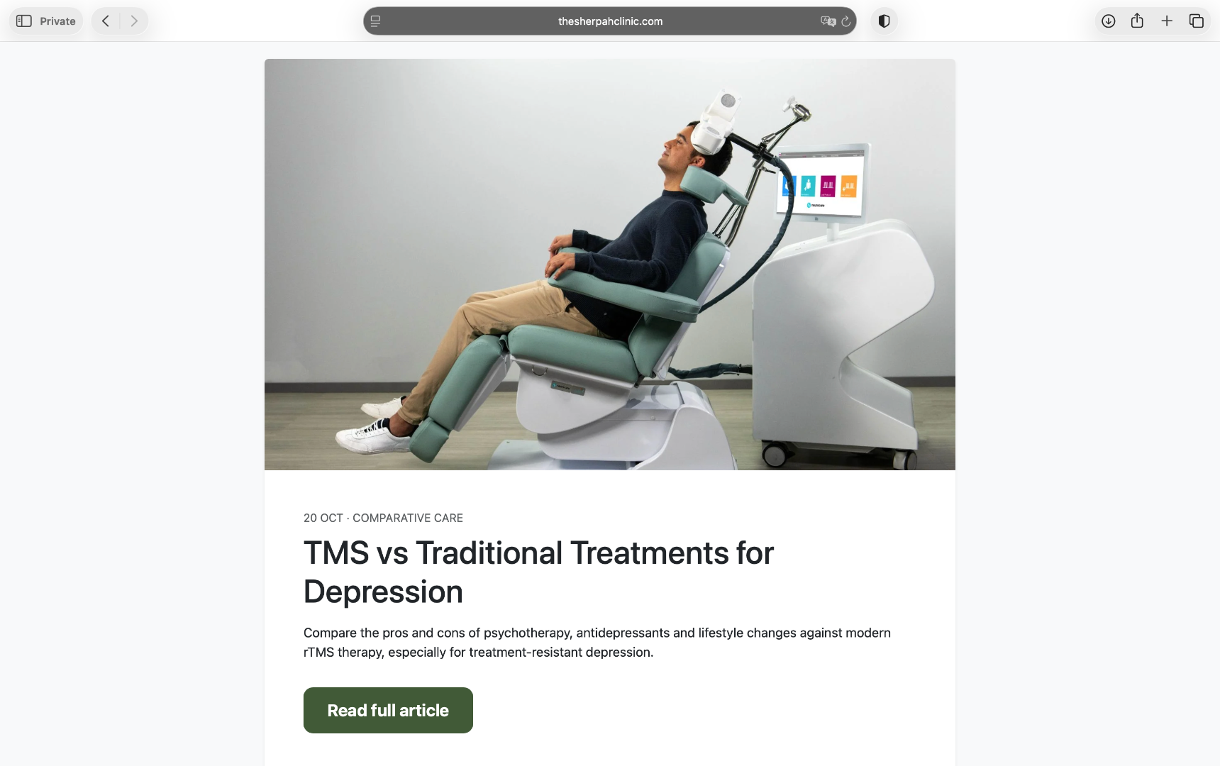 rTMS (repetitive Transcranial Magnetic Stimulation) is a safe, non-invasive treatment that uses carefully controlled magnetic pulses to gently activate specific areas of your brain responsible for regulating mood and emotional wellbeing.